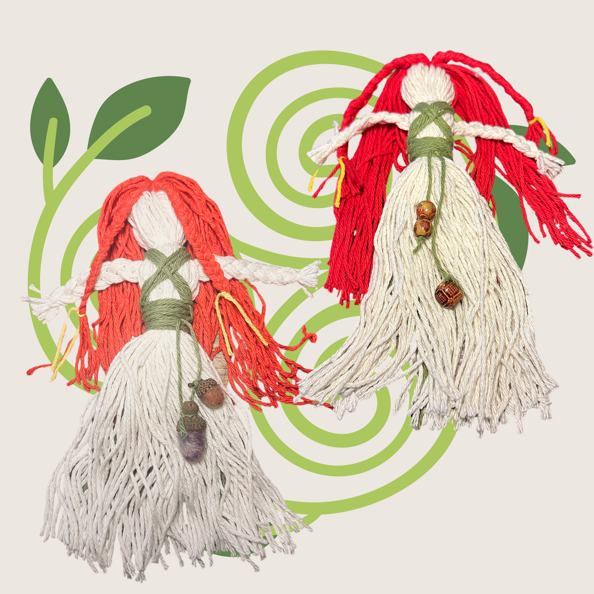 Each Goddess that I work with in the business is represented through these magickal dolls. Let them sit on your kitchen altar representing the growing season. Add a few drops of essential oil on them to carry a lovely fragrance in the room. Each doll comes with a different talisman hanging around her waist from acorns, luna moth charms or beads.