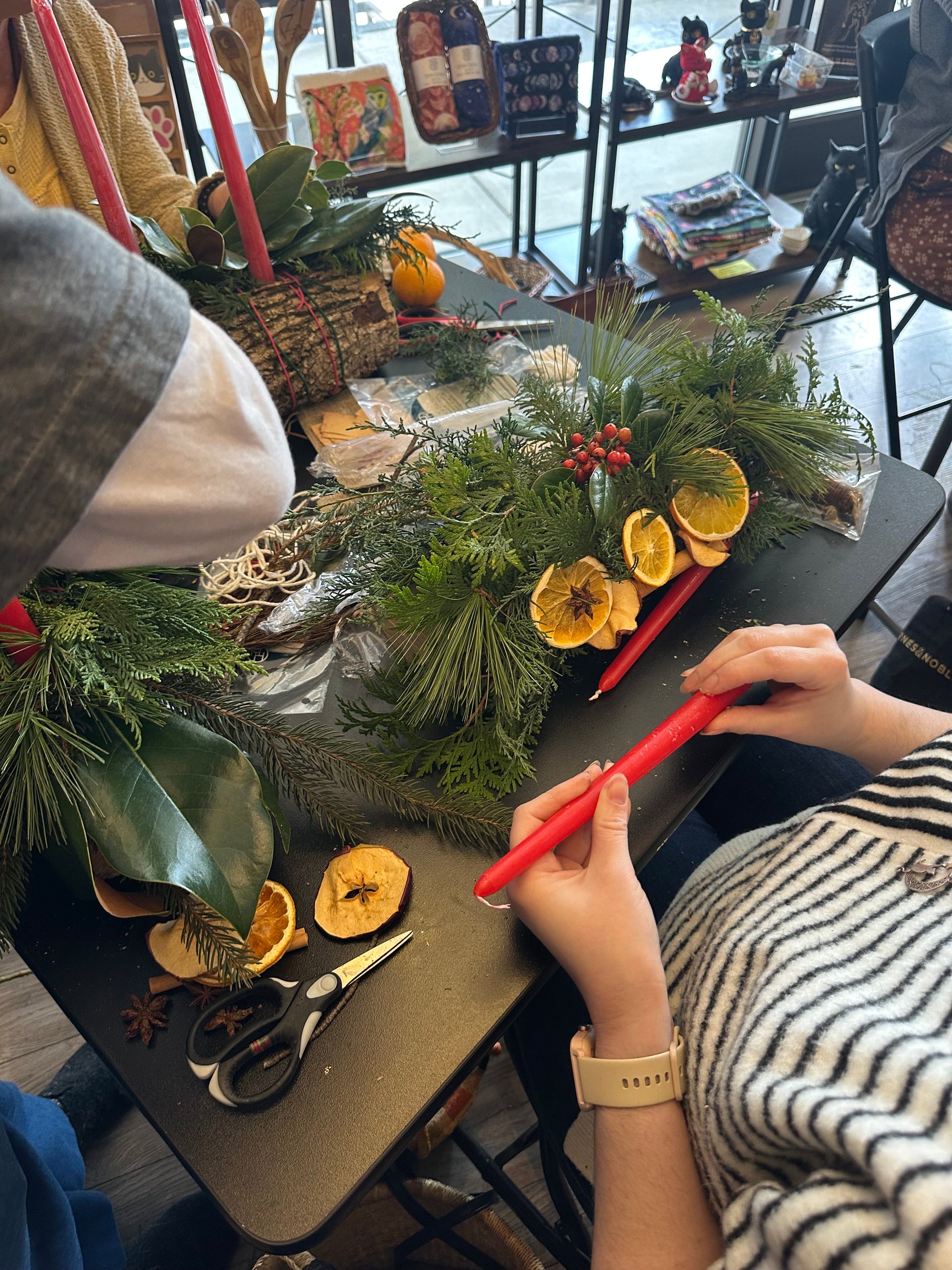Mulled wine and cider with refreshments will be available while you work together to increase the magick in your home for the holidays!